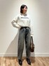 もっちり素材のクロップド丈のニットとハイウエストのカーブデニムで脚長効果◎