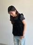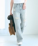 ========== ■ベロアラメビスチェ M/Black 36-250131002-09 ¥2,490 ■フレンチスリーブトップス S/Charcoal 15-250114001-02 ¥990 ■クラッシュデニムパンツ M/Lt.blue 26-250340001-16 ¥3,990 ==========