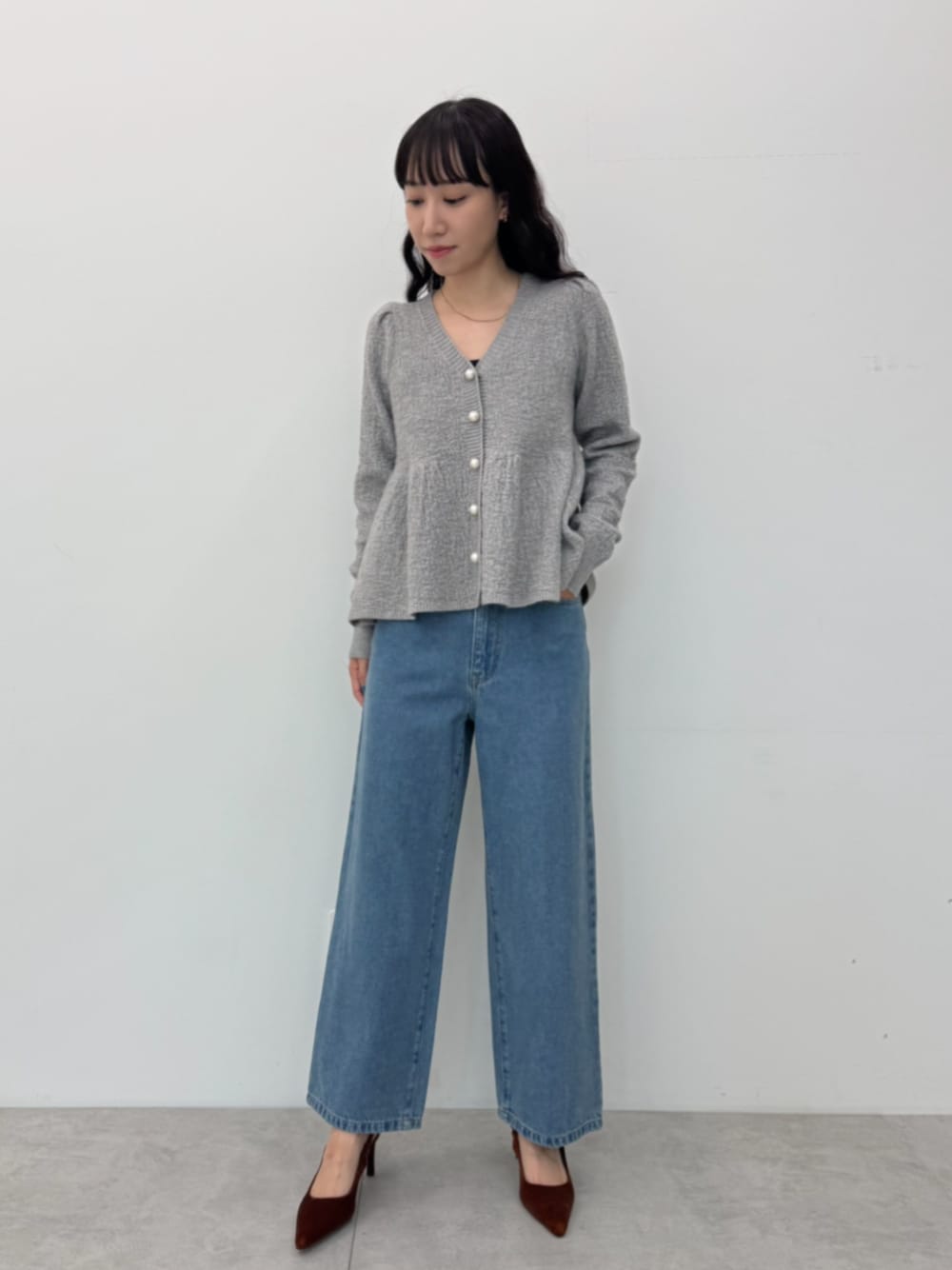 キラキラのラメが目を惹くラメニットカーディガン \25AWグレー・ブラックが登場!/ ■デザイン・シルエット 女性らしいシルエットを演出してくれるペプラムデザインと キラキラと上品に輝くラメが華やかさをプラス。 カジュアルさもありつつパールボタンがどこかおしゃれで ラグジュアリーな雰囲気を醸し出してくれます。 ■生地 ・柔らかいニット生地 ・保温性と通気性のバランスがよく、さらりとした肌触り ■コーディネート Vネックデザインが首元をすっきりと見せてくれるので、 シャツやTシャツの上に羽織ってもバランスよく決まります。 ボトムスはタイトスカートに合わせるとフェミニンに、 カジュアルダウンさせるならデニムを合わせるのがおすすめです◎