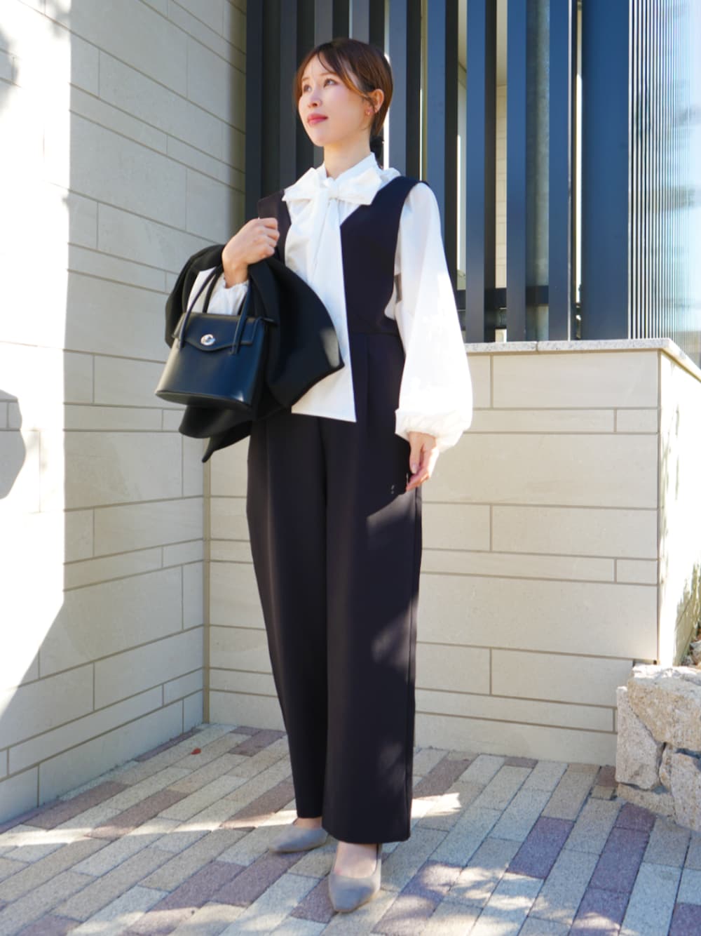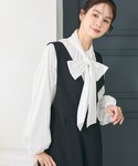 ■デザイン・シルエット 首元の大きめボウタイが華やかさをプラス。 袖口はゴム仕様でふんわりとしたシルエットに仕上げ、手元もすっきり見えます。 程よくゆとりのあるシルエットで、体のラインをさりげなくカバーしながら、上品さもキープ。 ■素材 ・ハリ感のある素材で型崩れしにくく、きれいなシルエットをキープ ・柔らかすぎずしっかり感のある生地で、着心地も快適<br><br> ■コーディネート ジャケットやカーディガンのインナーにしてオフィスや学校行事にも活躍。 パンツと合わせてきれいめカジュアルに、スカートで女性らしくも◎ アクセサリーやバッグで華やかさをさらに引き立てるコーディネートに。