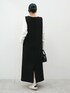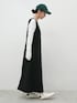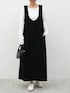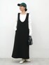 ■ソフトスウェットUネックジャンパースカート 46-250826003-04 M/Black着用 ¥1,990 ■袖シャーリングレイヤードトップス 26-250841001-24 M/White着用 ¥1,690