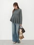 【Staff:160cm 骨格:ウェーブ】 ・エンボス長袖裾フレアトップス(M/Gray着用) 🏷46-210617001-01 ¥1,490 ・ムーヴデニムワイドパンツ(M/Blue着用) 🏷26-250540003-32 ¥2,990