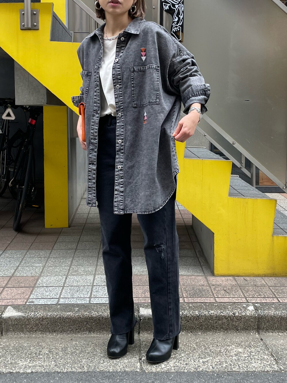 ご覧いただき、ありがとうございます⭐︎ ケミカルウォッシュのヴィンテージ見え ⚡️ビッグシルエット デニムシャツ⚡️ × デニムで、ワントーンコーデ。 お気に入り登録で、クーポン日等メールがきます! デニム×デニムでも、ケミカルウォッシュと刺繍が効いていて、コーデしやすいのでオススメです♪ 古着MIXコーデが好きな方にも! 左ポケットの上下にワンポイント刺繍入りです✨