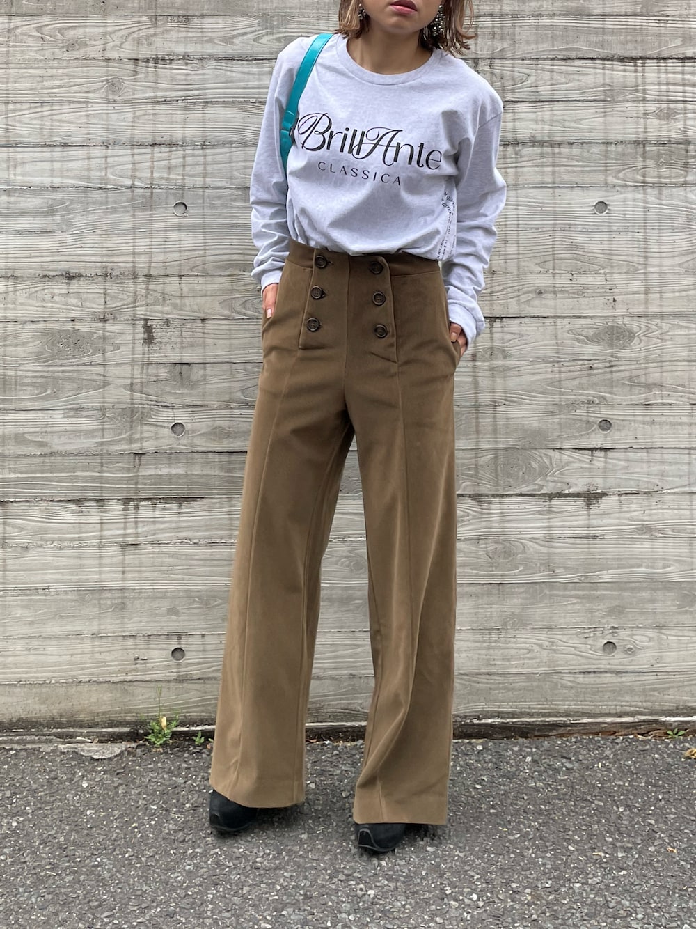 ご覧いただき、いつも、ありがとうございます⭐︎ 🖌️脇にもロゴ入りのロゴロンT🖌️ & 💫セールでお得なコーデュロイ釦パンツ💫 ワイド過ぎないパンツシルエットの コーデュロイパンツは、 細コール生地で、春の肌寒い日に使えます✨ 脇にもプリント入りのロンTは、 フロントのロゴが、レトロ風でカワイイです! コーデに取り入れやすいロゴです✨
