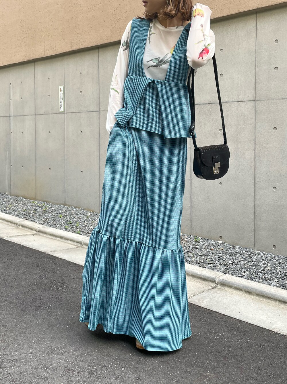 ご覧いただき、いつも、ありがとうございます⭐︎ 🍦チェック柄の2WAYのビスチェ/ベスト🍦 & 🍨チェック柄のティアードスカート🍨 & 🍓シアー花柄チュールトップス🍓 🍦チェック柄のビスチェ/ベスト🍦は、 前後2WAYで着用ができて、セットアップでの着用も✨ アレンジがきくアイテムです! 細かいチェック柄で、表面感のある布帛シャーリング生地で、高見えもします! (76379693 ZOZO: レイヤードネックノースリワンピース とも、 セットアップで着用ができます!) 🍨チェック柄のティアードスカート🍨は、 ウエストゴム仕様で、 生地もストレッチがきいているので、 リラックス感◎✨ 🍓シアー花柄チュールトップス🍓は、 使いやすいく、映える、優秀アイテムです!