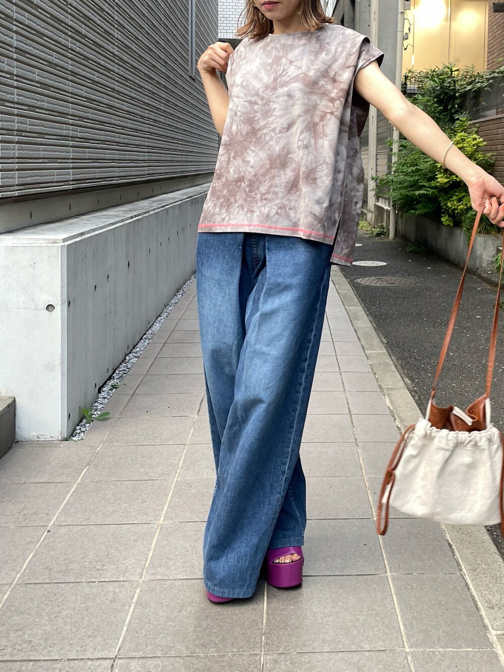 cocoのTシャツ/カットソー「タイダイ配色ステッチ タックデザインTシャツ」を使ったコーディネート