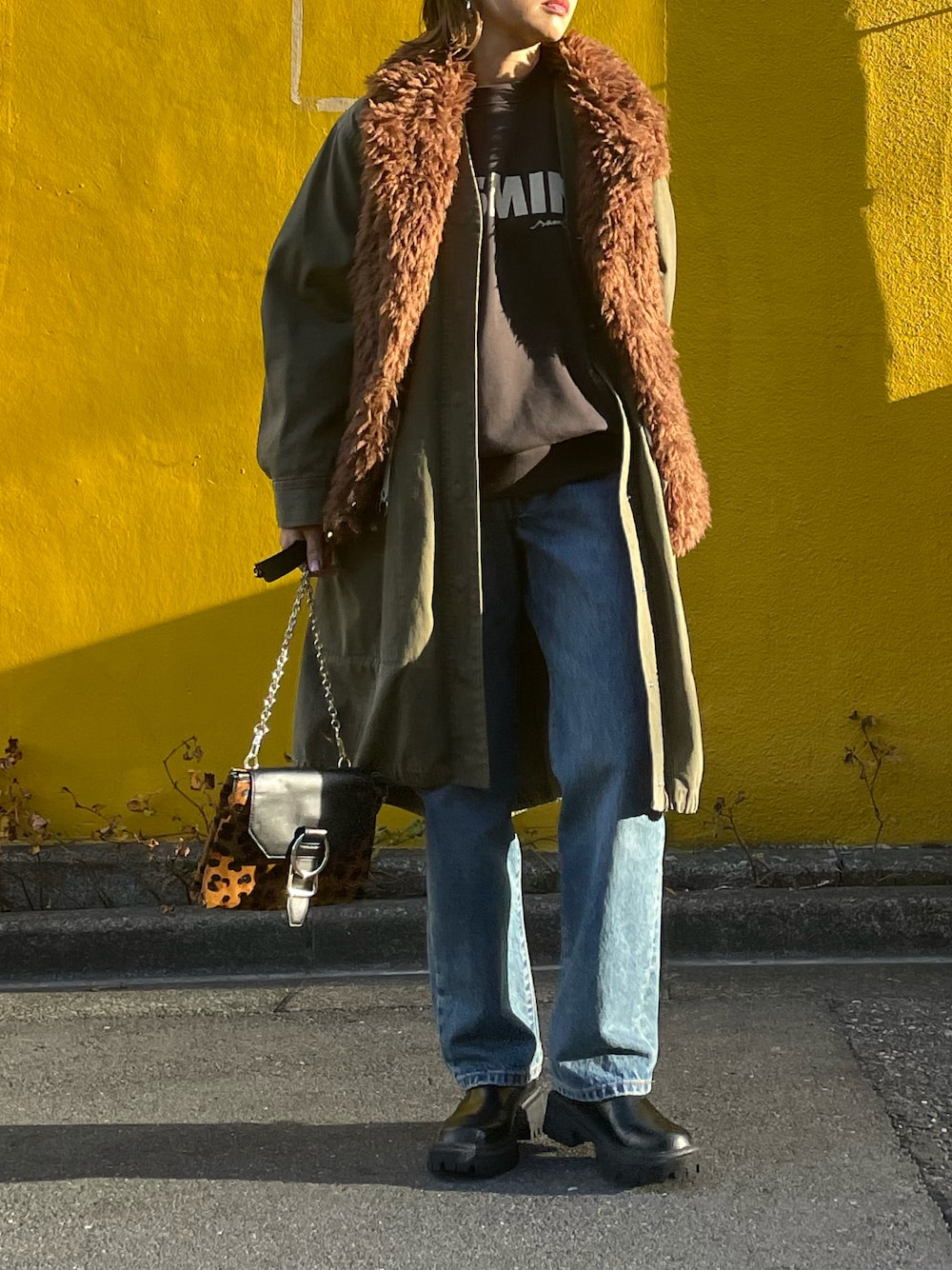cocoのベスト「衿付きフェイクファーボリュームベスト」を使ったコーディネート