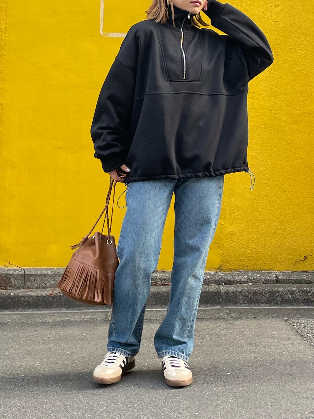 cocoのスウェット「ハーフジップ配色ドロスト裏起毛アノラックトップス」を使ったコーディネート
