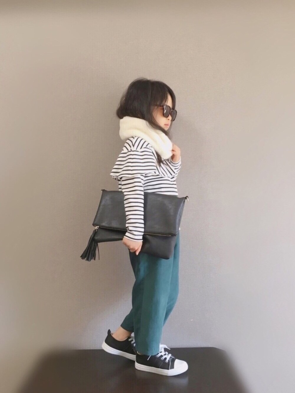 naaaのTシャツ/カットソー「【MPS】フリルボーダーロンT ブラック」を使ったコーディネート