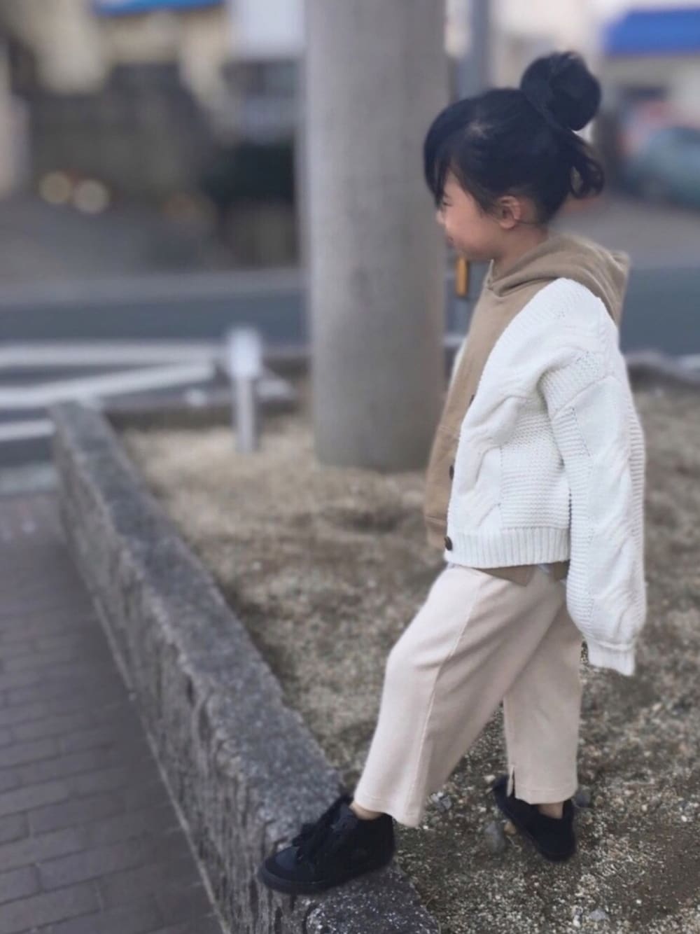 naaaのカーディガン/ボレロ「【キッズ】ケーブルショートカーデ/801482」を使ったコーディネート