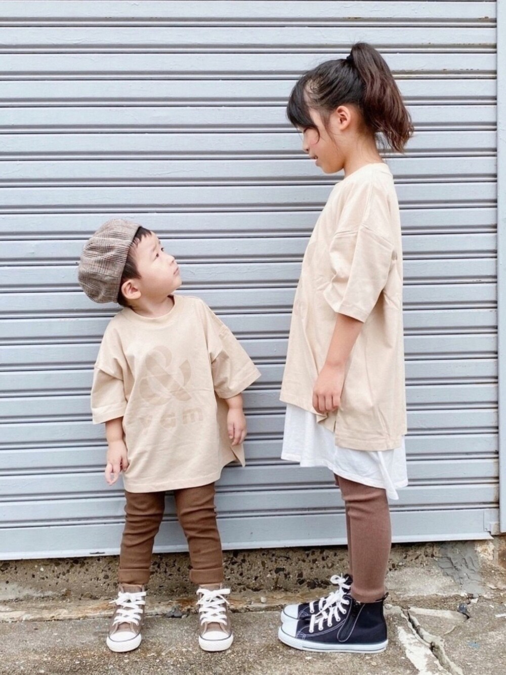 姉弟おそろコーデ🤎🤎 &yamさんのTシャツ! 弟くんが持ってるこれと同じブラックが 可愛いすぎたのでベージュを2人におむかえ😆 しかもセールになってた🙌🙌 sizeは2size up! #オーバーサイズ いいね、お気に入り、フォロー、フォルダイン ありがとうございます♥︎︎∗︎*゚