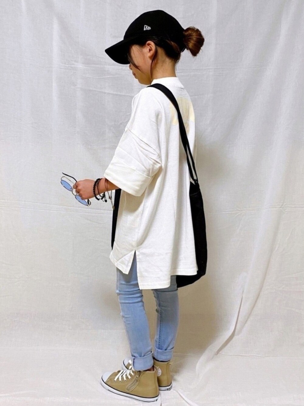 naaaのTシャツ/カットソー「キッズGINOバックプリント クルーネックロング丈ビッグシルエットTシャツ(半端袖)」を使ったコーディネート