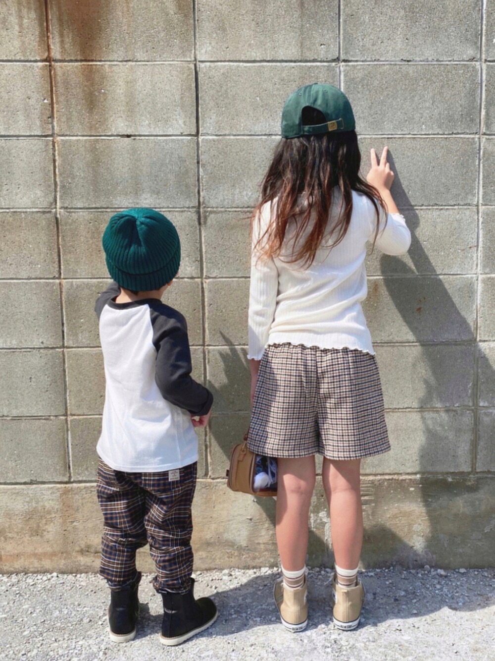 いいね お気に入り フォロー 📁inありがとうございます🍁 とても嬉しいです⸜(๑⃙⃘'ᵕ'๑⃙⃘)⸝⋆︎* naaa 8歳/128㎝/24㎏ kiii 3歳/101㎝/16㎏ チェックパンツとグリーンで おそろっぽく🤎 kiiiのラグランTはねぇねのお下がり♪ #チェッカーず2021 りちゅちゃん♡参加させてね♪