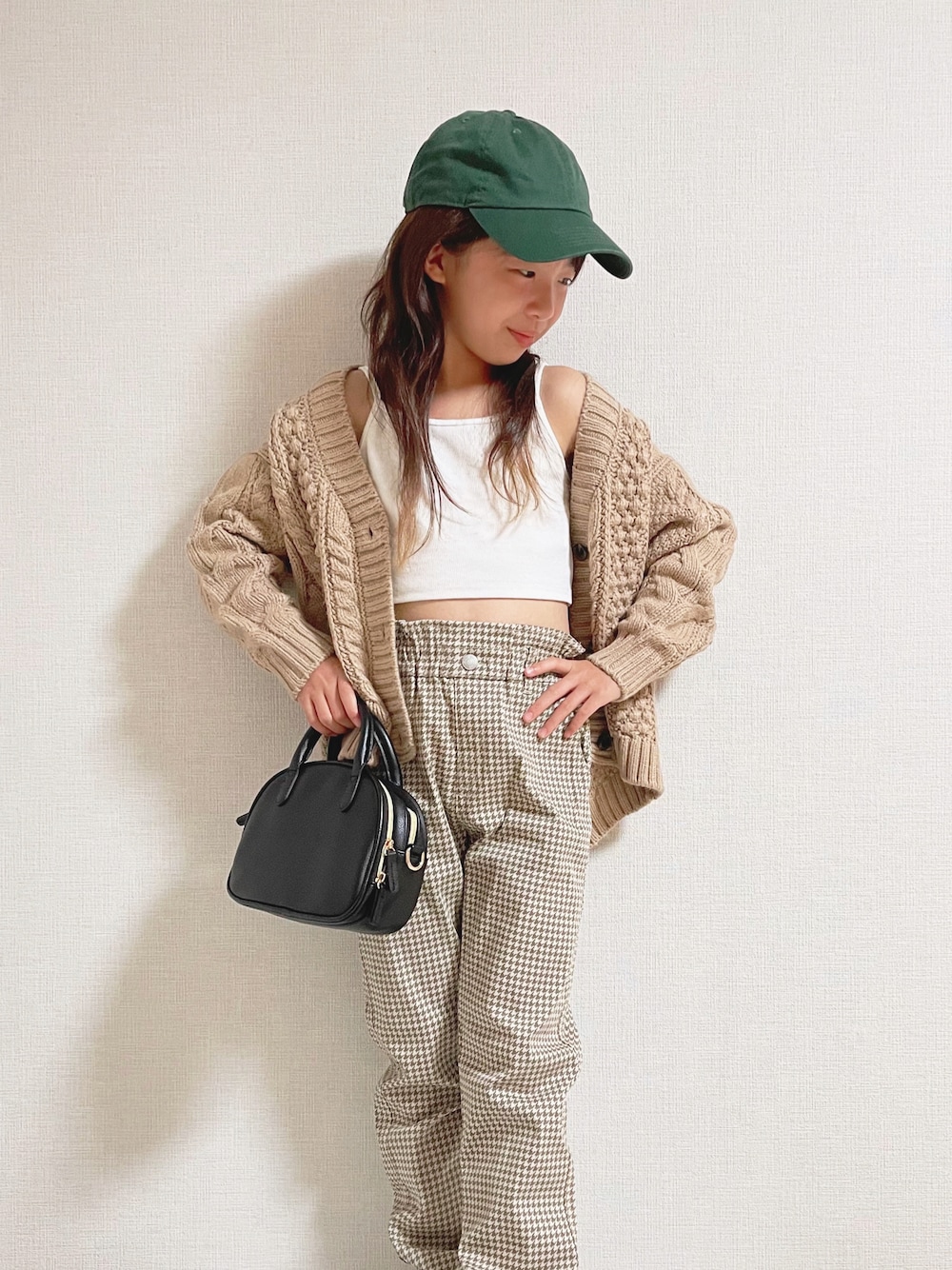♡.save.follow.📁in ありがとうございます♪ とても嬉しいです🤎 naaa 9歳/137㌢/30㌔ 昨年のGUのニットカーディガン🤎 #ショルダーバッグ