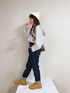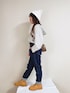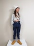 naaaのデニムパンツ「【マカロンパンツ】テーパードシルエットデニムロングパンツ」を使ったコーディネート