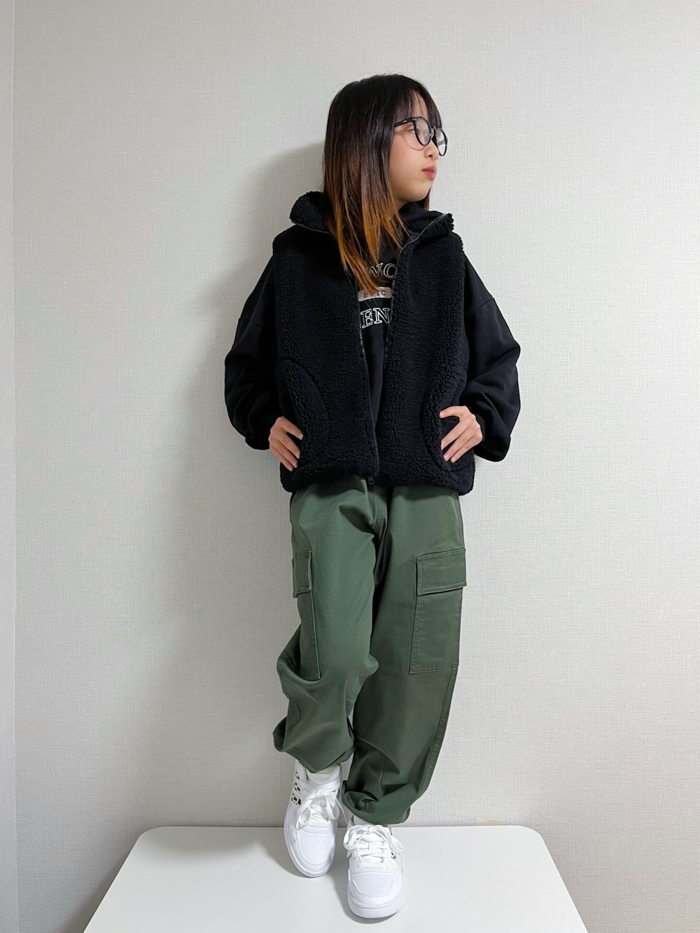 ユニクロのカーゴパンツとGUのボアベストでプチプラコーデ🖤