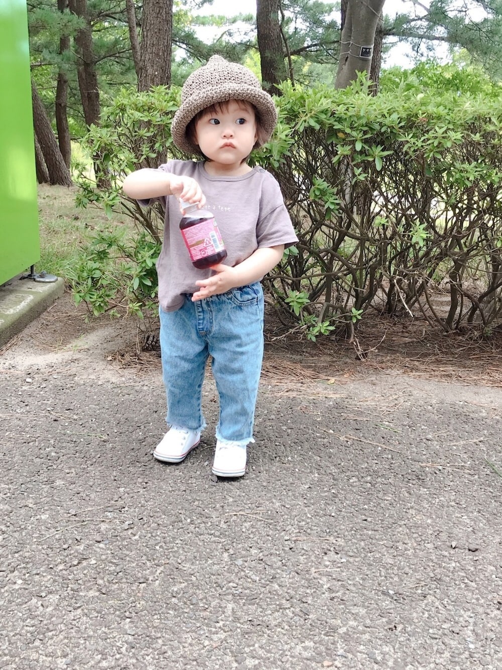 いつかの公園こーで。 まだ歩きが不安定なので膝がついても怪我しないようにデニムパンツで出動です。 bithdayはtete a teteやfuta futaがナチュラルな可愛さでプチプラだし好きです。