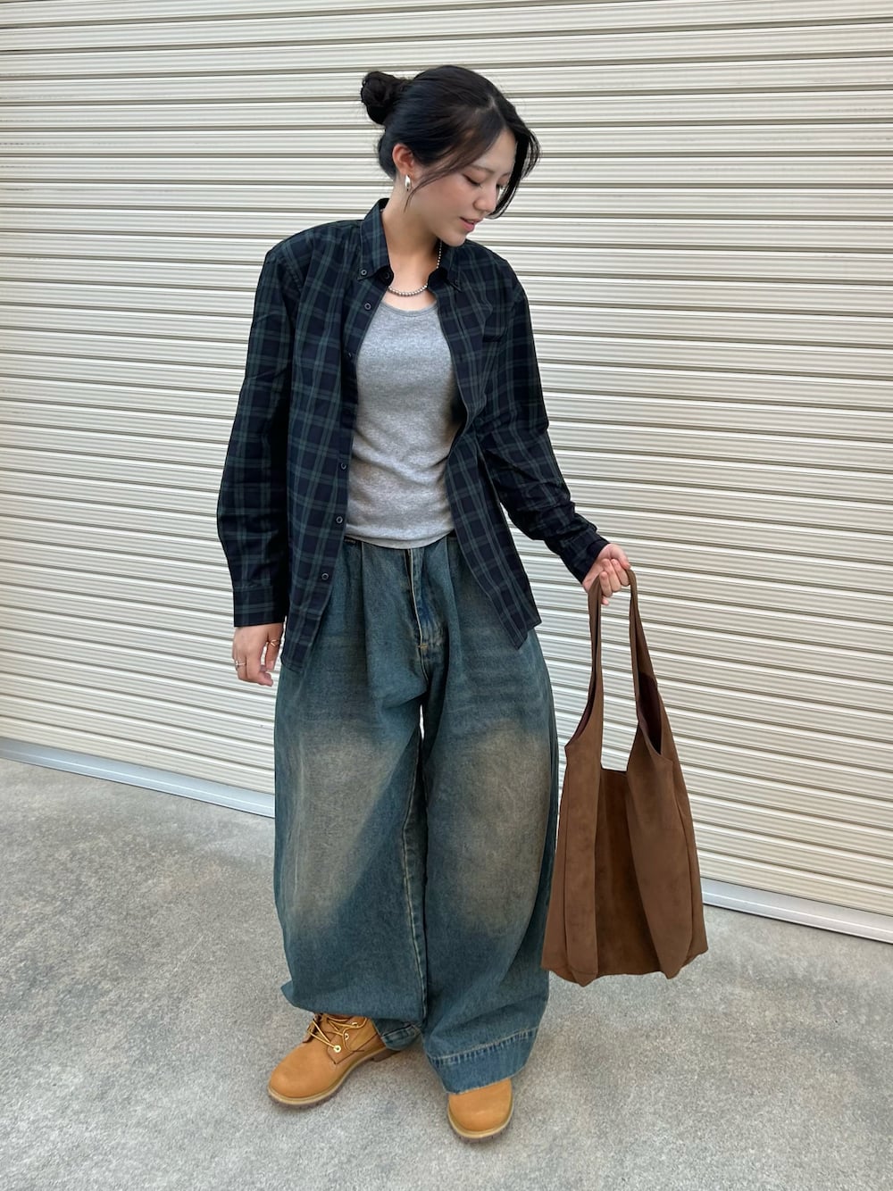 ご覧いただきありがとうございます🎀 チェックシャツメインに秋らしい色を使ってコーデしました! 髪の毛をアップにする事で綺麗な印象にも見えるようにしました! ig c____5.auy