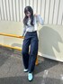 ご覧いただきありがとうございます🎀 水色のローファーメインに相性の良いグレーのトップスを合わせました!アイテムを白で統一することでより爽やかに✨