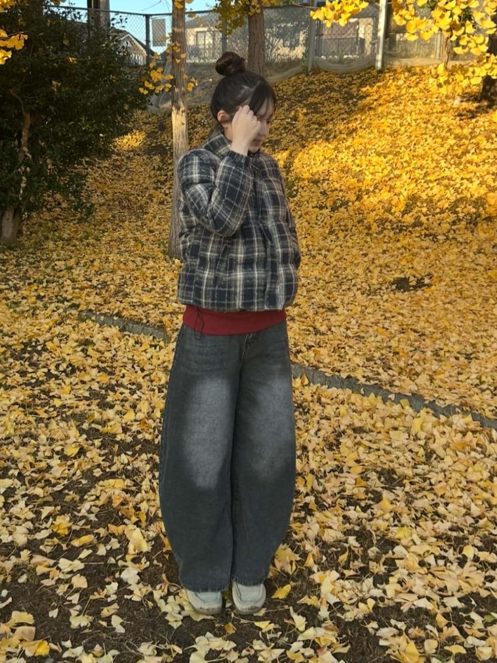 ご覧頂きありがとうございます🎀 チェックのアウターメインに彩度を落としたコーデ組みました✨ 差し色の赤が可愛い❤️