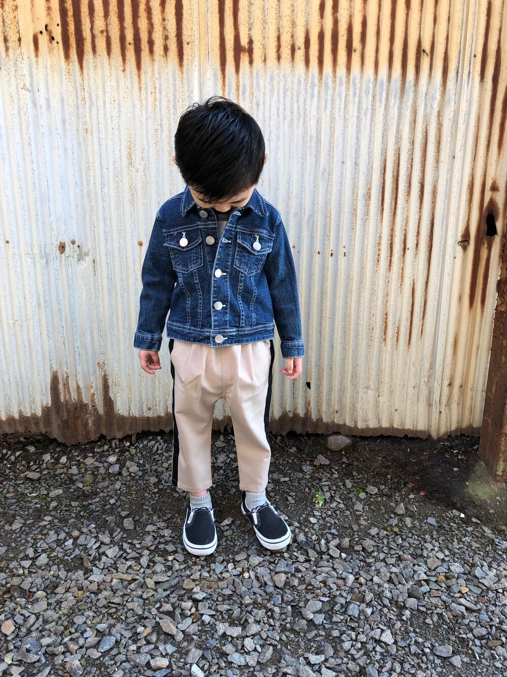 3歳6ヶ月 96㎝ 12.0kg 15㎝ 体重は軽いけど背は伸びてるので全体的に寸足らず😂💦💦 90㎝95㎝サイズアウトやね😂
