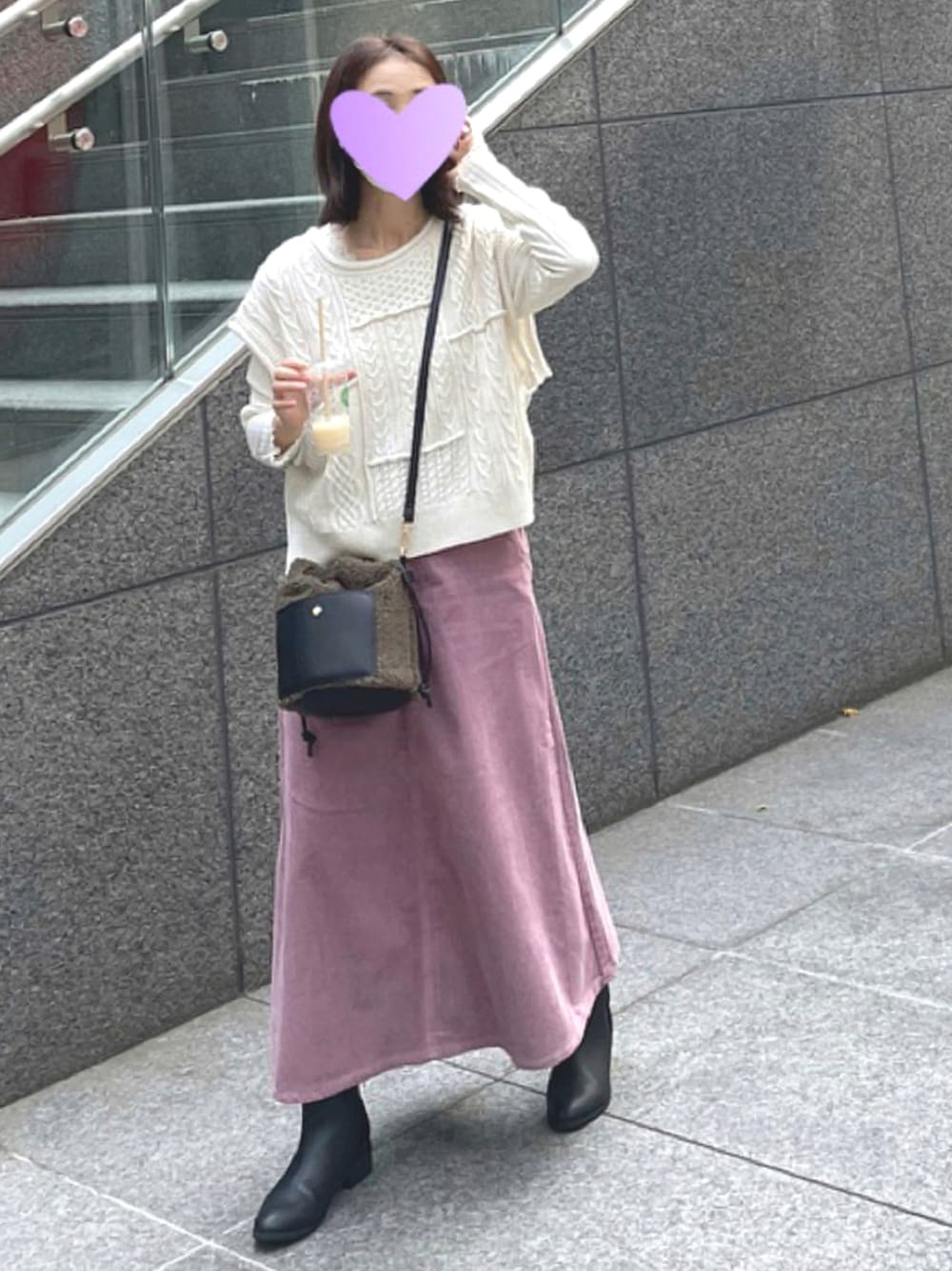 ニットベスト コーデュロイスカート 巾着バッグ all SHIMAMURA
