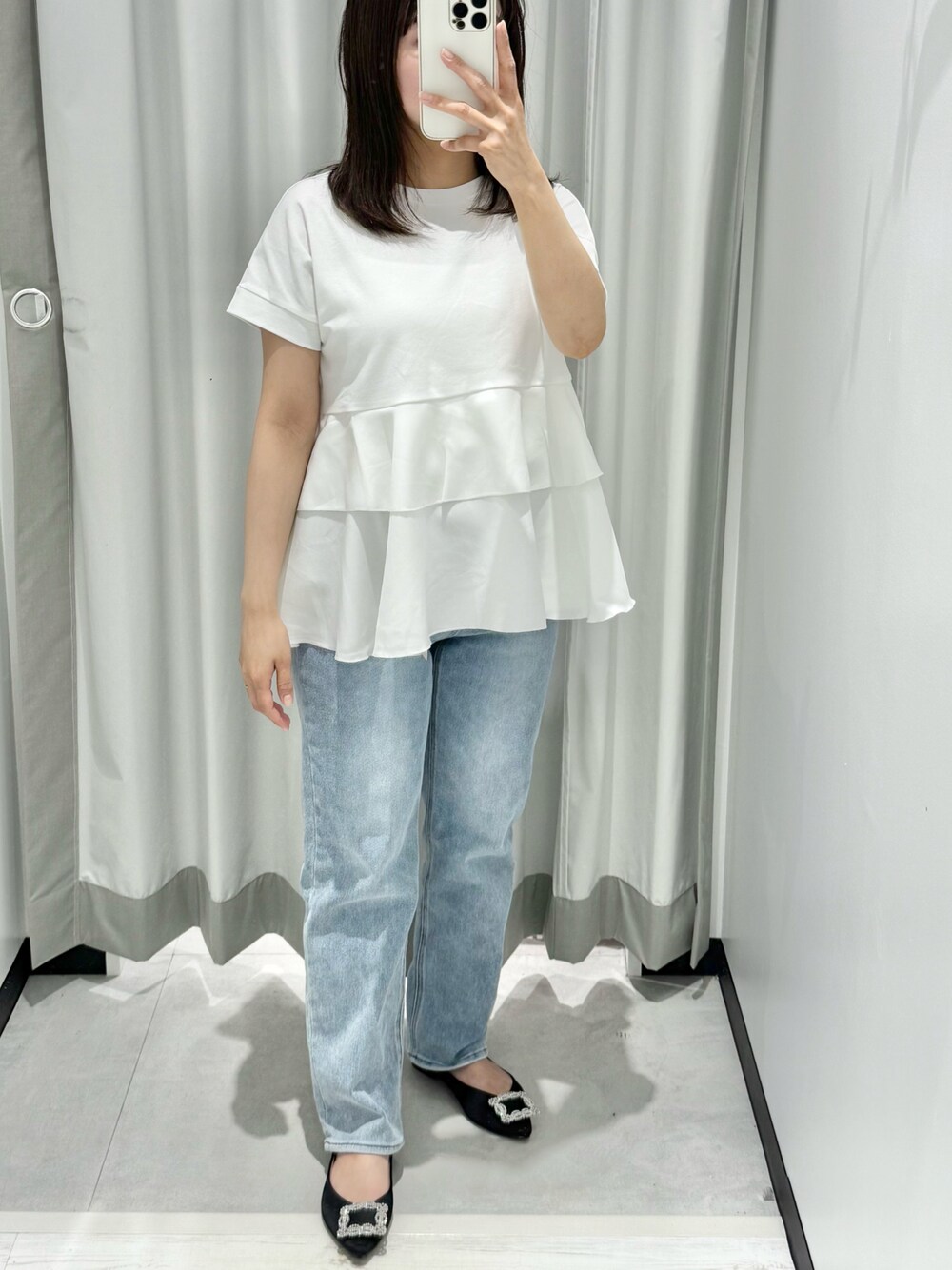 coco146cmのTシャツ/カットソー「異素材切り替え2段フリルTシャツ」を使ったコーディネート