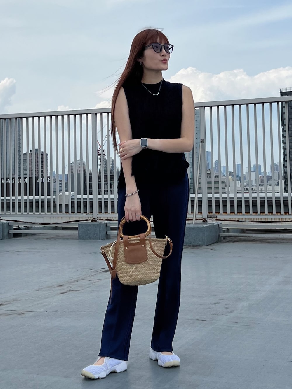 オールネイビーはオールブラックよりも重たくなりすぎなくて夏コーデにいいかも🩵
