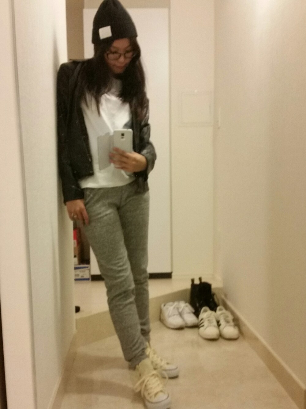 ユニクロのジャージが暖かくって 素敵な1枚♡
