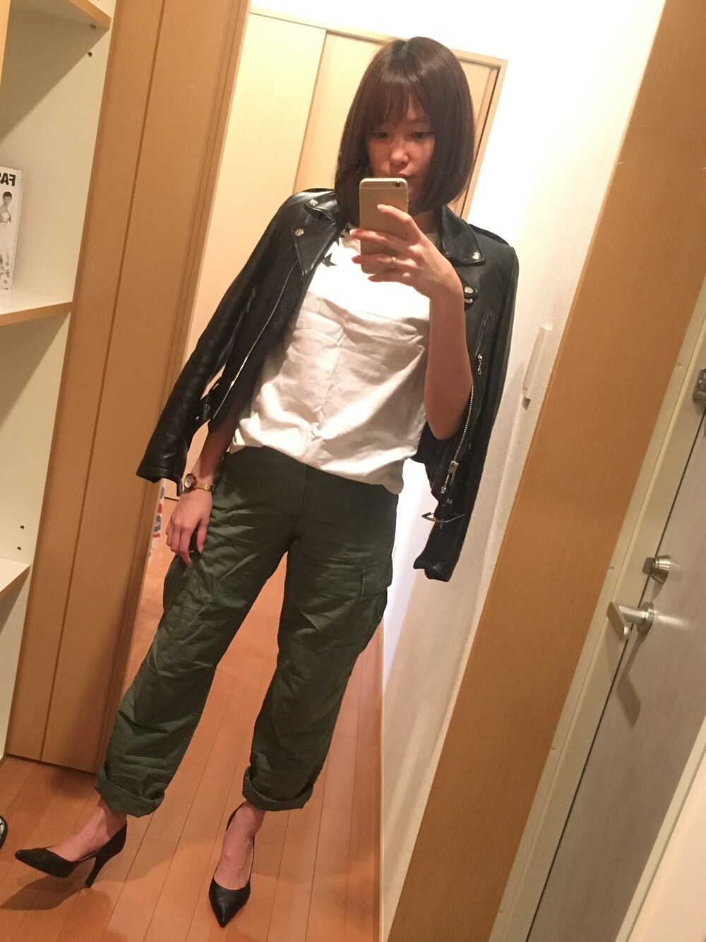 中山こころのライダースジャケット「Schott/ショット/218W Womens LAMB ONE STAR/ラムワンスター」を使ったコーディネート