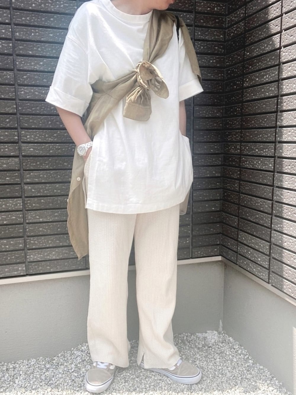 GLOBAL WORKのシアーシャツを 肩斜め掛けに……💕 くくり方が雑。。。。😑 性格出てる…🤭‼︎‼︎