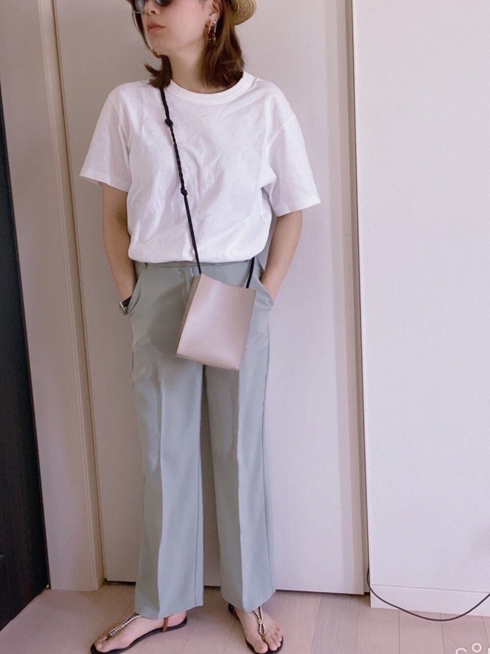 おはようございます☀ Tシャツ👚とパンツ👖のシンプル コーディネート🤍💚 LFのフレアパンツ😍💕 相変わらずミントグリーン💚