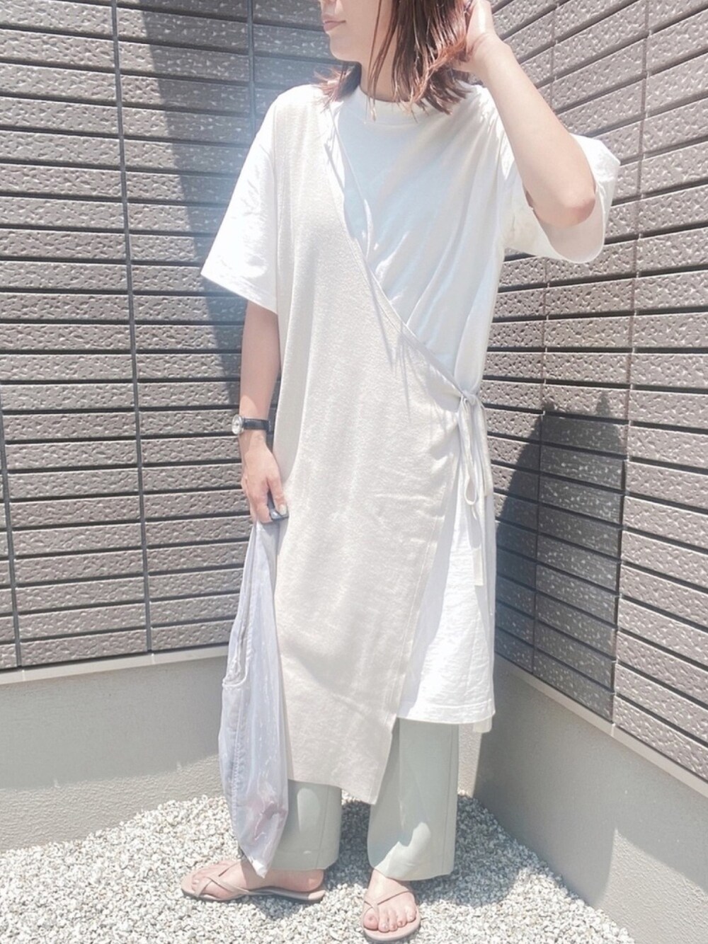 おはようございます☀ アシメワンピ🤍フレアパンツ💚