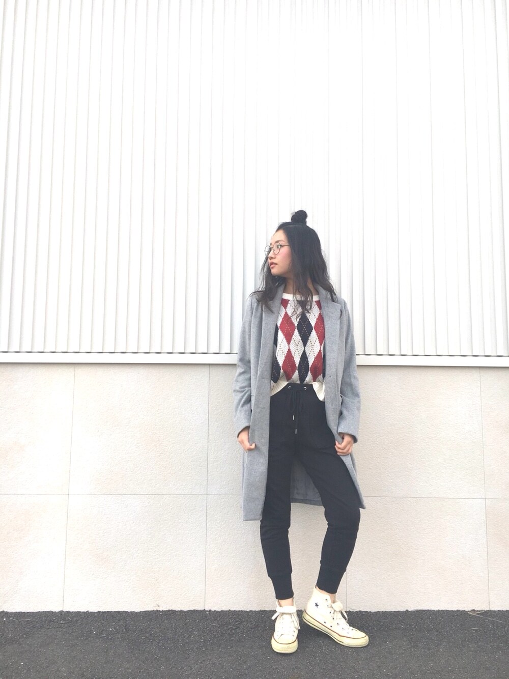 少しずつ寒くなってきたのでチェスターコートをチョイス!♡中にアーガイル柄のセーターを合わせてトラディショナルなコーデに💓💓ボトムスはスウェットパンツを合わせてカジュアルに💨コンバースはスウェットパンツと相性バツグン🌈