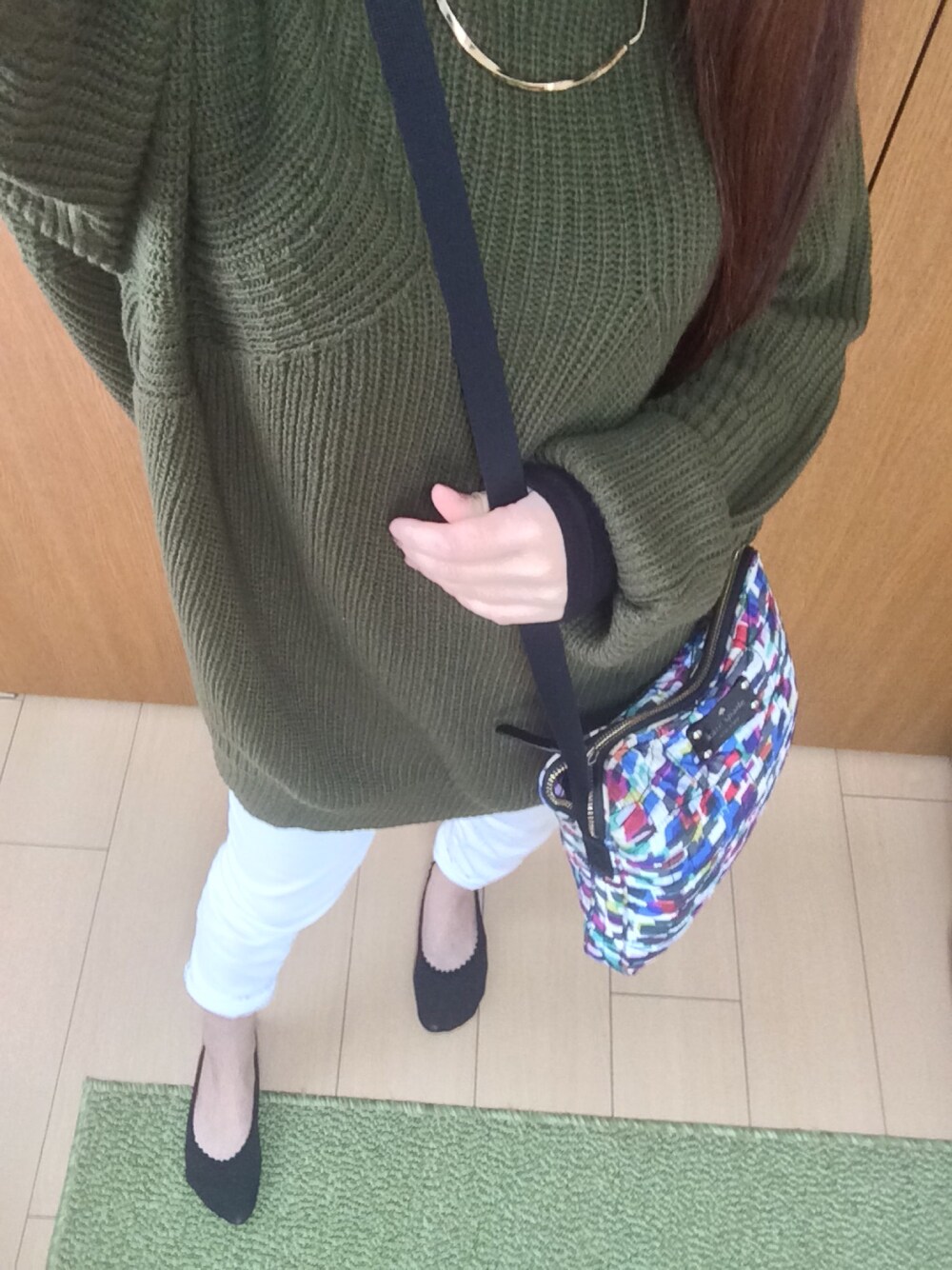 秋コーデ。 今から京都へ紅葉観光しに行ってきますッ*\(^o^)/* トップスはしまパトしてて一目惚れで購入!! チビの私が4L買ったので、店員さんもビックリしていました∑(゚Д゚) が、ゆったりコーデをしたかったのでイイのだ♡♡ トップス袖は大幅で折り、ボトムスの裾は小幅まくりあげてまとめてみました♪( ´▽`)