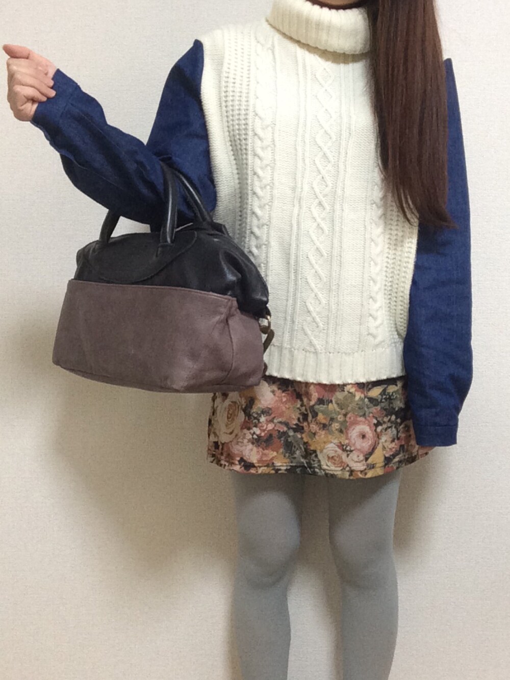 cocoのニット/セーター「KBF+ 袖デニム切替ハイネックニット」を使ったコーディネート