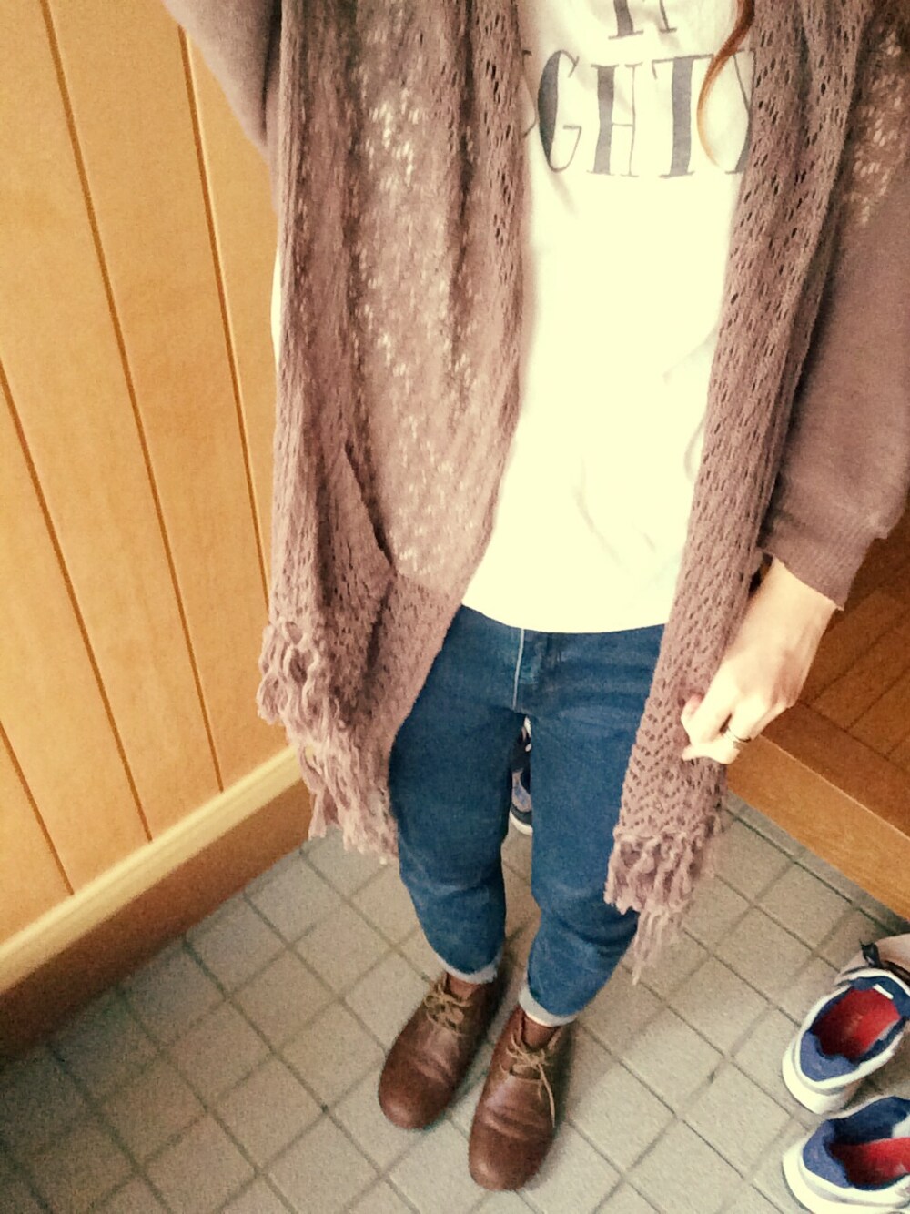 Cardigan / pual cecin shirts / w closet pants / UNIQLO shoose / シャンブル