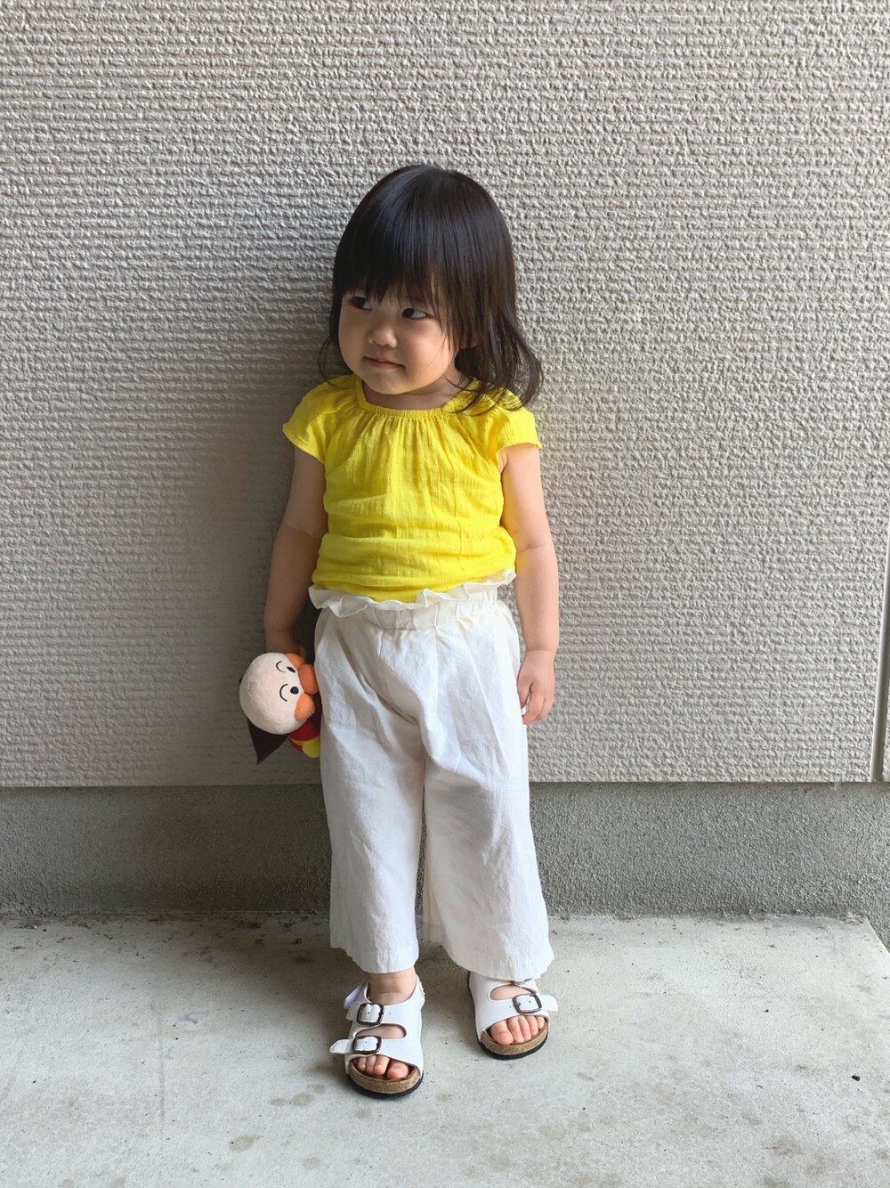 去年買ったhmのトップス サイズ70やけど大きめやから全然着れる😂 ワイドパンツはtocotocoさん 閉店セールでお安くゲット🙆♀️ 白やし汚れそうやけど(笑)