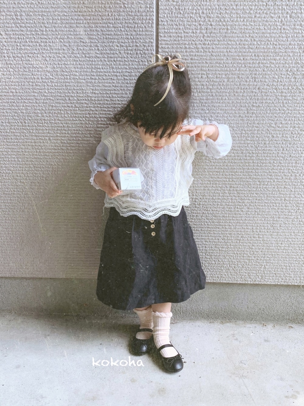 こないだ無事に入園式終えました🌸 おめでとう❤️ レースベストは maca martさんの💓 かわいい〜💓 一回きりは勿体ないから普段着でもいけるように揃えた☺️ スカートは元々持ってた物で!