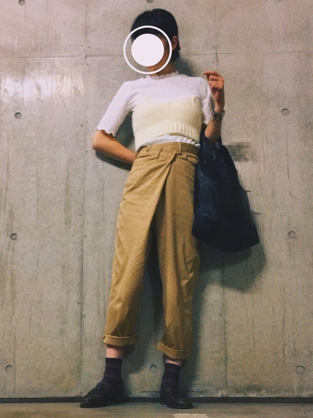 N .のピアス(両耳用)「MARC by Marc Jacobs Enamel Logo Disc Stud Earrings, Cream/Golden」を使ったコーディネート