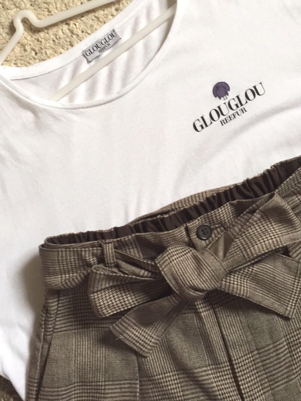 グレンチェックさん👖 GUのグレンチェックワイドパンツ 世間ではグレー圧勝みたい💔 ですが、敢えて先にブラウンを🌰🍂🍇 glougloureefur☕️🥐🌳の👚 openした時に、3型で発売されていたもの。プリントの雰囲気に秋に寄せたイメージでブラウン合わせが気に入りました。