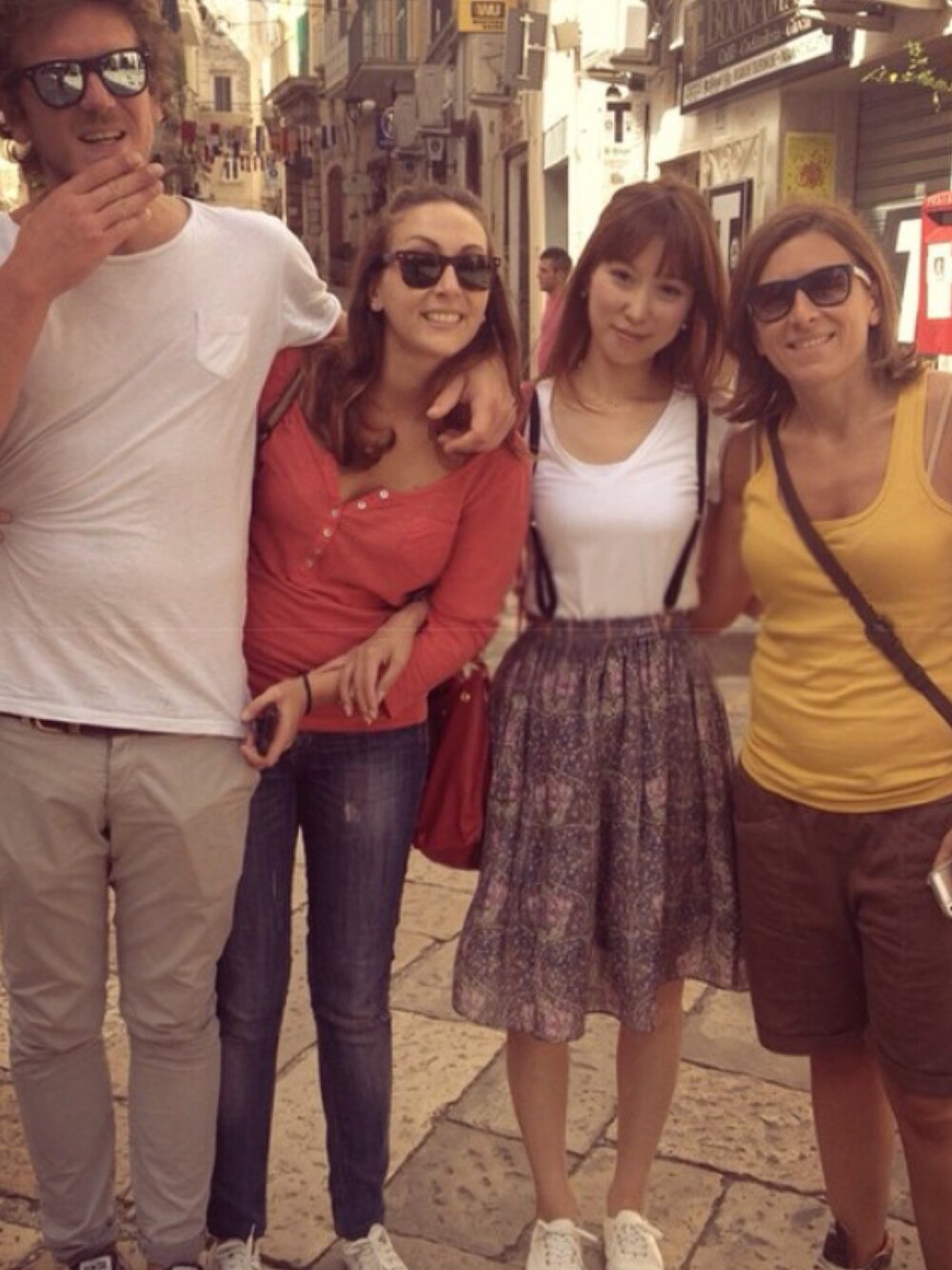秋だけどイタリアの友達の結婚式で南イタリアのBariに行ったので暑いくらい。 スカートにサスペンダーはお気に入りスタイルです。