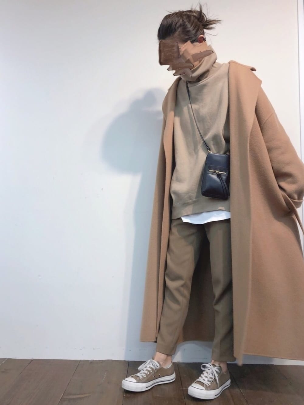 ロングコートでベージュスタイル