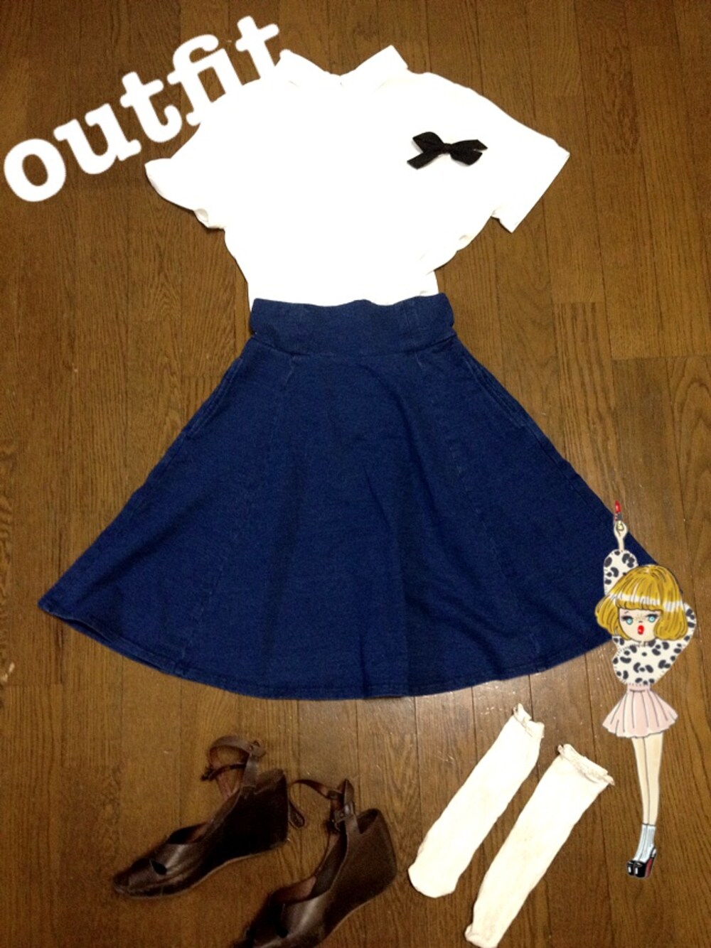kao ❇︎のスカート「カットデニムミドルスカート 537981」を使ったコーディネート