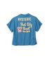 春らしいブルーのシャツバックプリントのコイル刺繍がアクセントになってます! コンパクト丈でスタイルアップして着こなせます★ お気軽にお問い合わせください🎶