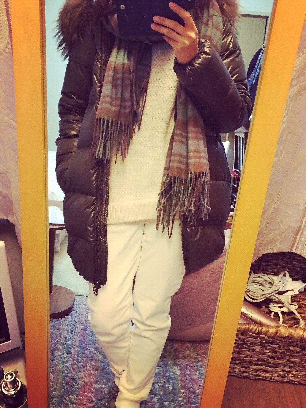 クリスマスイブのcode☻ 寒いからダウンだけど、せめて中は真っ白に♥︎ あー携帯新しくしたからサクサクでうれしー!