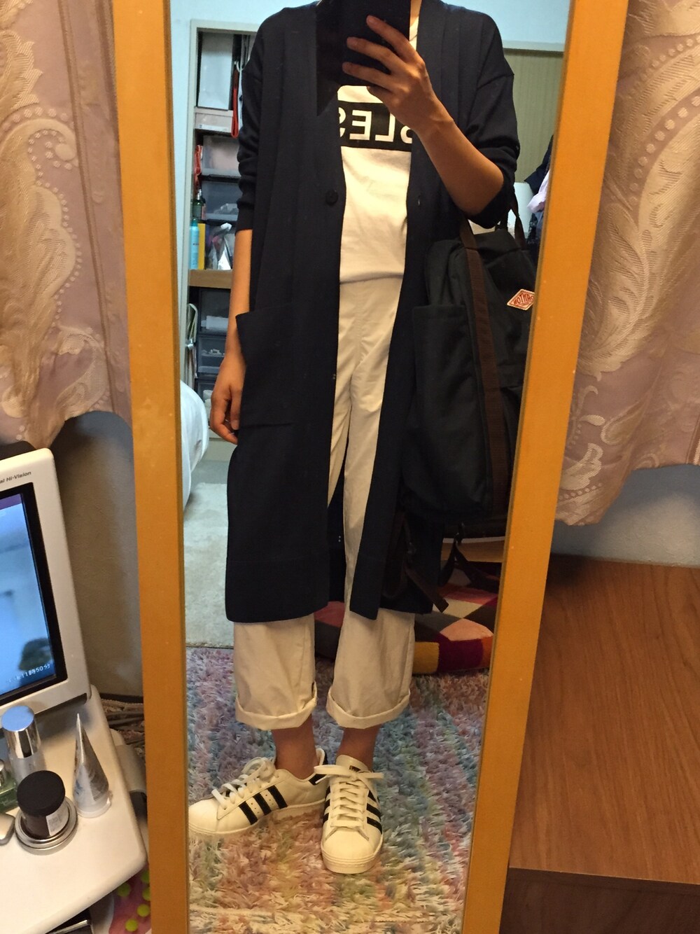 このロングカーデ、サイドにスリットが入ってて動きやすいし、150㌢の私でも着れちゃう 長さ。めーっちゃお気に入り❤︎