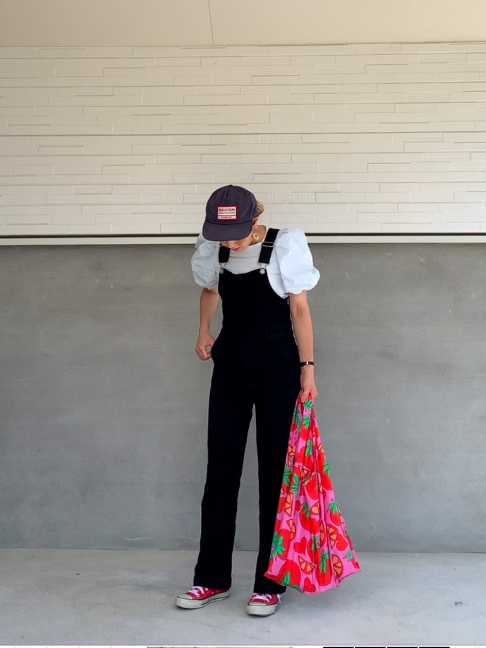 着回し🔄🔄🔄 mysticサロペット黒🖤🖤🖤 前回と色違いコーデ🫧💙🖤 パフスリーブの形やはり可愛い😍❤️ いつもいいね👍フォローsaveありがとうございます🥰🥹🥰