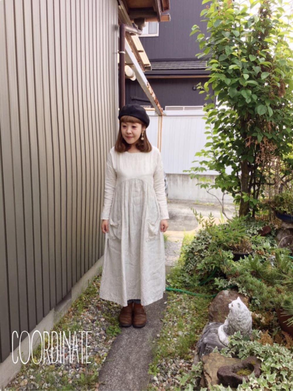 こっちのワンピース「リネンマキシ丈長袖ワンピース」を使ったコーディネート