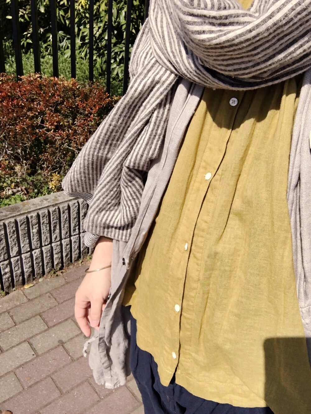 狙ったわけじゃないんですが、気づいたら全身08mabさんでした。。。 全身映る鏡がないのでこんな感じの全体像見えない撮影ですみません。。。 羽織はリネンガウン。ワンピースっぽくもなるボタン付きです。 パンツはリネンサルエルパンツ。前回載せたパンツと形が同じものです。 ブラウスはコットンボイル素材で、とても柔らかく肌触りもいいので夏まで使えます。
